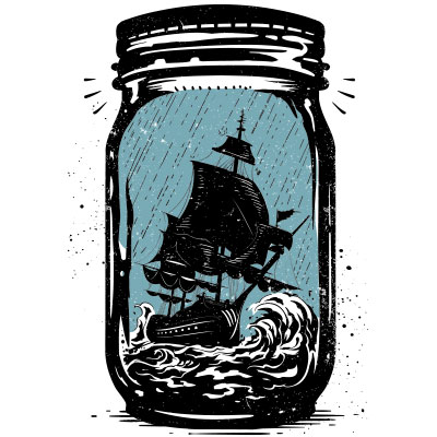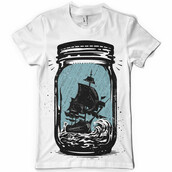 Vector t-shirt features a detailed jar containing a ship on waves . This is an Adobe Illustrator file, ready for print. Files included are Eps. The template can be used for digital printing and screenprinting.The file is well organised with every element on its own layer, including artwork and background
