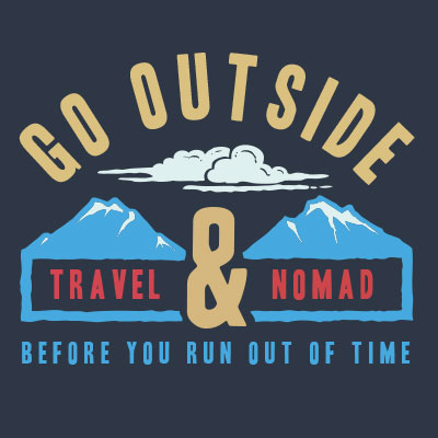 Travel and Nomad is typography based graphic with adventure mountain camp outdoor holiday theme and vintage style illustration. The text is EDITABLE so you can change with your own words.
