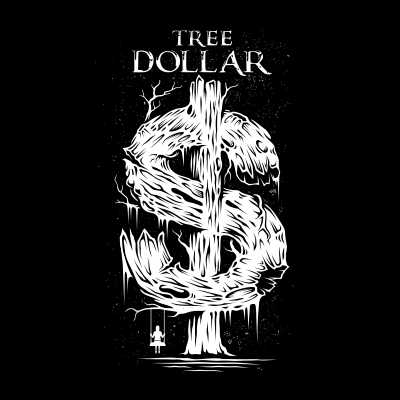 "Tree Dollar" typography style. This design use 1 colours on black t-shirt. it is high quality vector format, easy for editing process, available for Adobe Illustrator, and Corel Draw and can be used for digital printing and screenprinting.