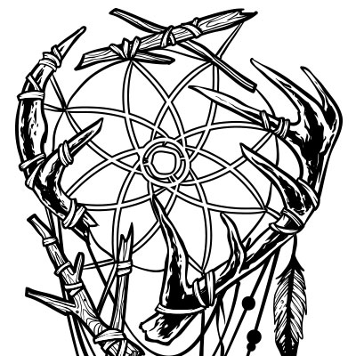 Tribe t-shirt design features a hand drawn dreamcatcher made from antlers, some twigs and some feathers. This is an Adobe Illustrator file, ready for print. Files included are Eps. The template can be used for digital printing and screenprinting.