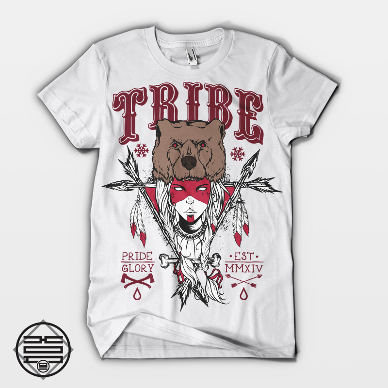 Tribe t-shirt design template in vector format, featuring detailed indian girl now available for Adobe Illustrator and can be used for digital printing and screenprinting .