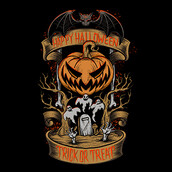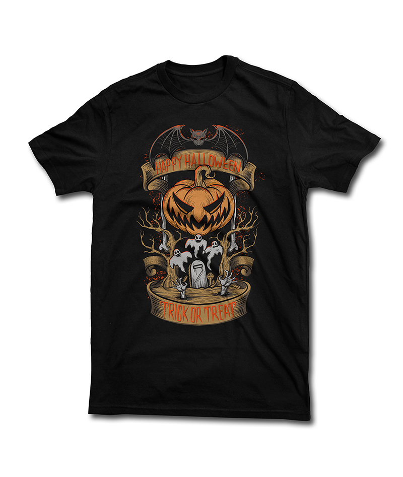 Vector illustration of Pumkin. Illustration horror pumpkin with the bat, bone, banner and the ghost.