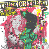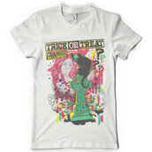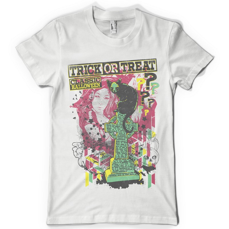 Trick or treat design template in vector format, featuring detailed halloween design with graveyard and ghosts now available for Adobe Illustrator, Adobe Photoshop and Corel Draw and can be used for digital printing and screenprinting .