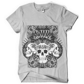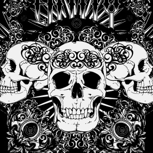 Trinity circle digital design template in vector format, featuring detailed trio of skulls now available for Adobe Illustrator, Adobe Photoshop and Corel Draw and can be used for digital printing and screenprinting .