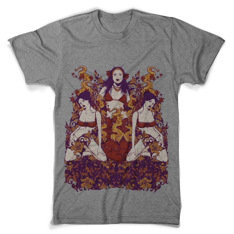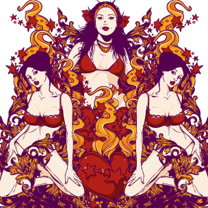 Trinity digital template in vector format, featuring detailed sexy trio of girls now available for Adobe Illustrator, Adobe Photoshop and Corel Draw and can be used for digital printing and screenprinting .