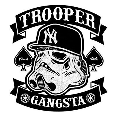 Stormtrooper with style of rapper gangsta character style T-shirt design template with Adobe Photoshop, the file is PSD separated Layers. Can be used for digital printing and screen printing.