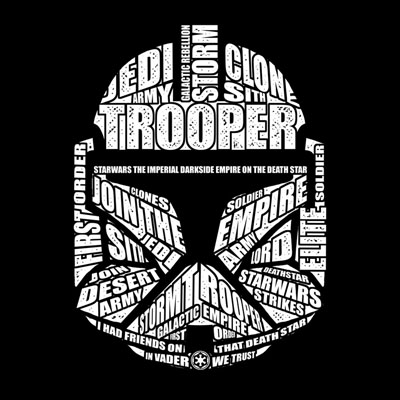 Storm Trooper Typography Design created with adobe Photoshop .1 colour print, PSD File separated Layers. Can be used for digital printing and screen printing.