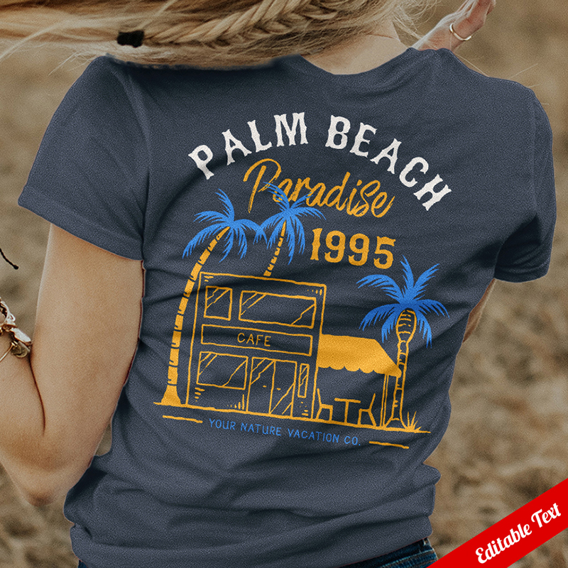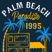 Vector illustration of a cafe on the beautiful beach. Ready to print on t-shirt.