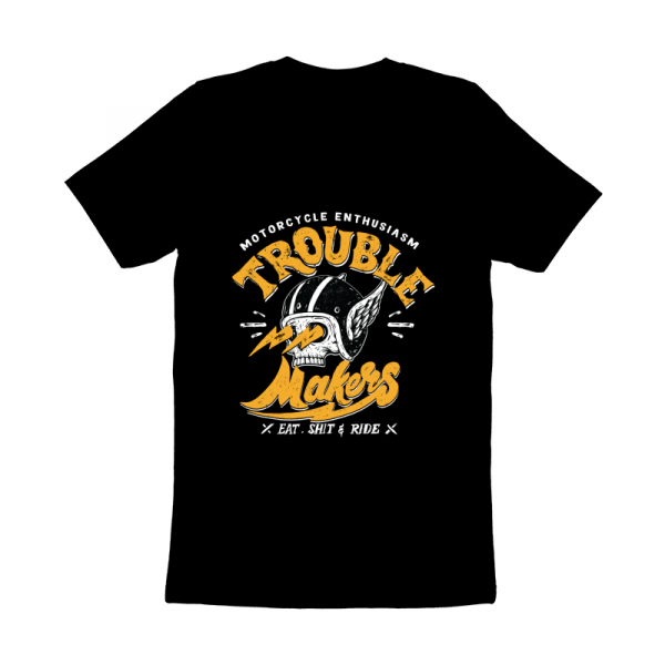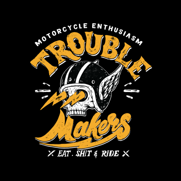 This design “ trouble makers” is made in Adobe Ilustrator is ready for print.