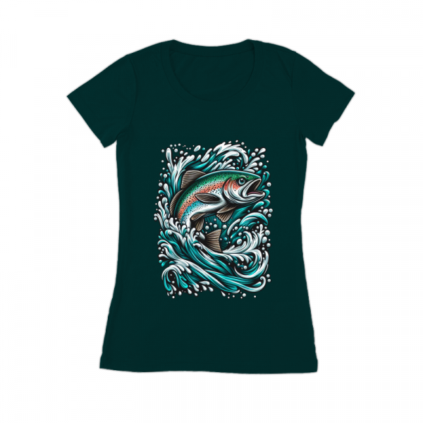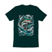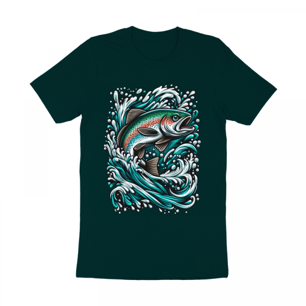 Exhilarating fishing adventure with this eye-catching trout fishing shirt. Featuring a vibrant design of a trout leaping out of the water, this shirt is perfect for any angler who loves the thrill of the chase.