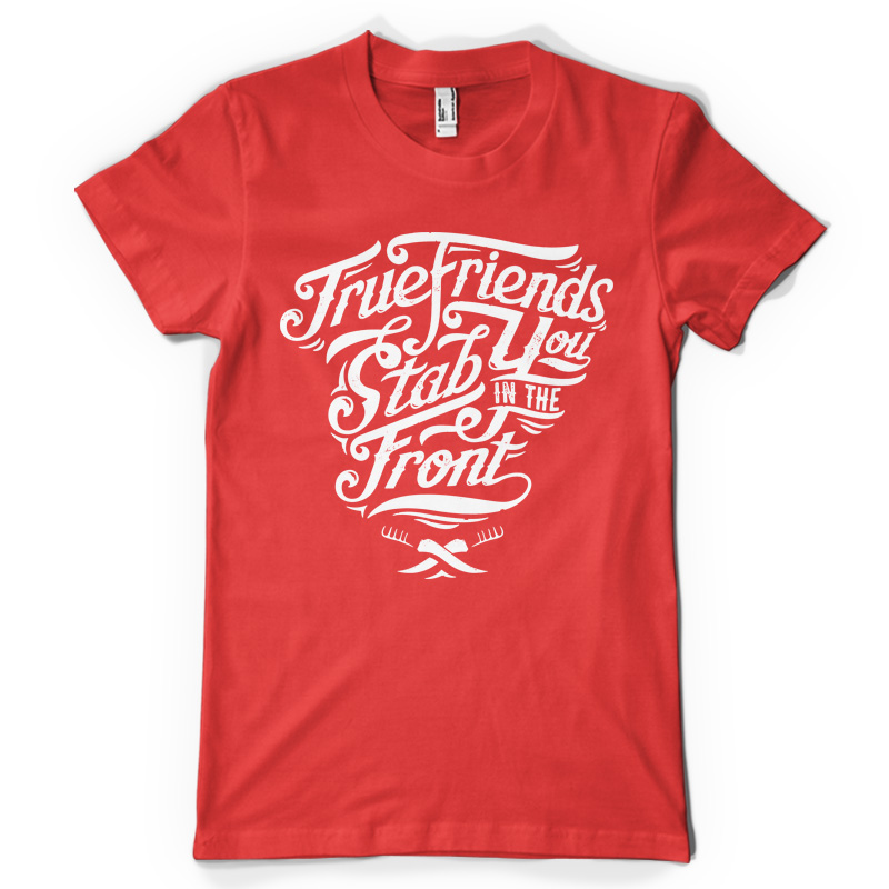 "True Friends" T-shirt design featuring typography style quote, with distressed details. The files available are suitable for Adobe Illustrator, Adobe Photoshop and Corel Draw and can be used for digital printing and screenprinting.