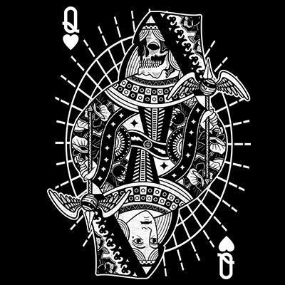 Queen trump Card T-shirt design template with Adobe Photoshop, one colour on black, PSD separated Layers. Can be used for digital printing and screen printing. Easy editing text, including fonts.