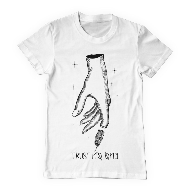 "Trust no one" design is available in high quality files, such as Ai,EPS, PDF and PNG. Vector files are organized on separate layers and all elements are editable. Can be used for both digital (DTG) and screenprinting.