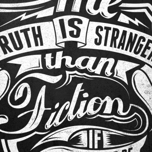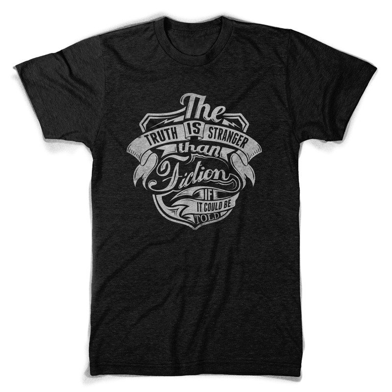 Truth is stranger than fiction graphic design template in vector format, featuring detailed typography quote now available for Adobe Illustrator, Adobe Photoshop and Corel Draw and can be used for digital printing and screenprinting .