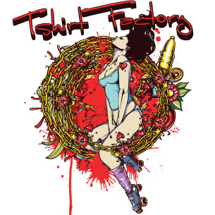 Tshirt Factory groupie digital design template in vector format, featuring detailed sexy girl waing her hair now available for Adobe Illustrator, Adobe Photoshop and Corel Draw and can be used for digital printing and screenprinting .