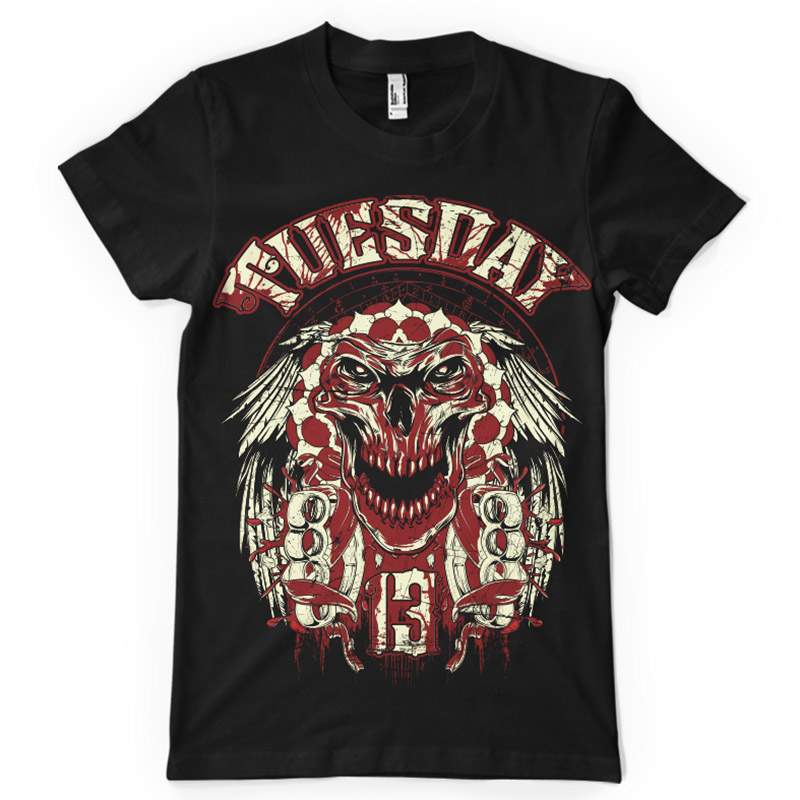 Tuesday t-shirt print features a detailed design available for Adobe Illustrator, Adobe Photoshop and Corel Draw and can be used for digital printing and screenprinting . Ready to print or use in anything you want.