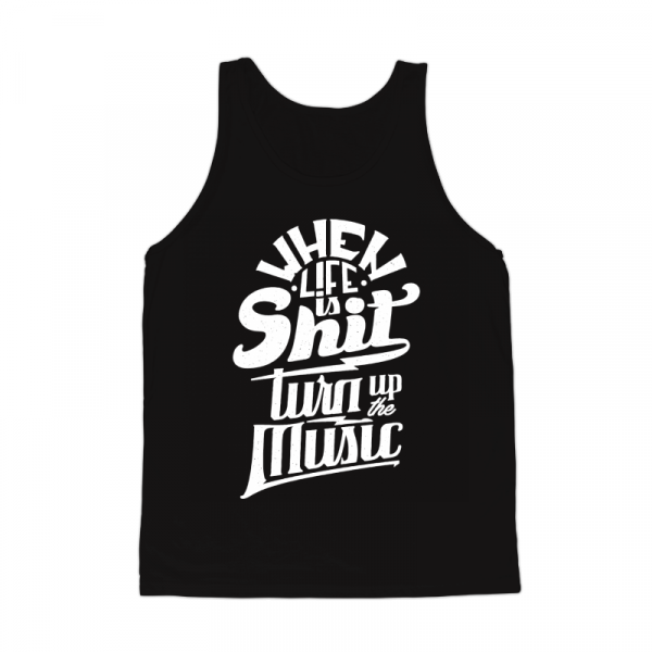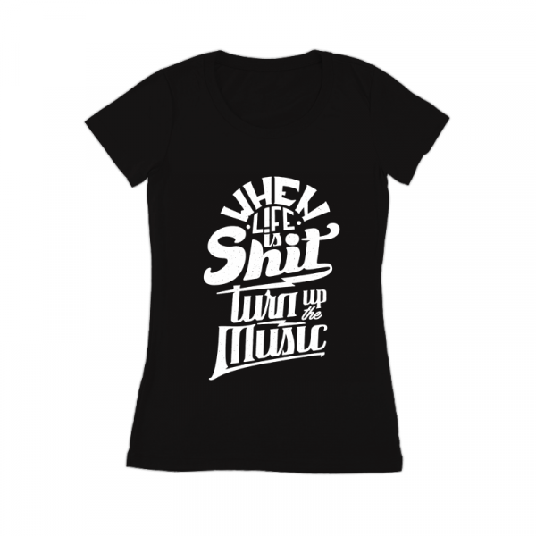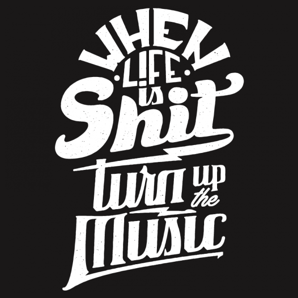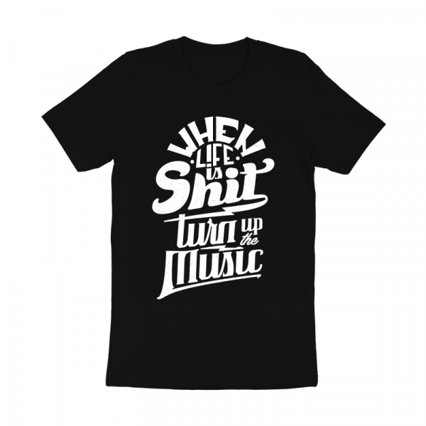 "Turn Up The Music" T-shirt design featuring typography style quote. The files available are suitable for Adobe Illustrator and Adobe Photoshop and can be used for digital printing and screen-printing.