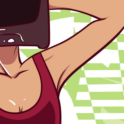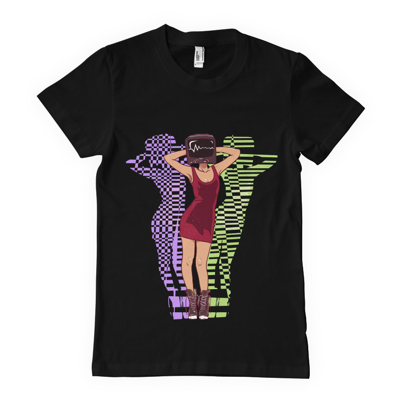 TV head T-Shirt Design. Digital illustration of girl with TV on her head.The colors are changeable. The source file is available in AI, EPS, PNG, PSD and SVG format.