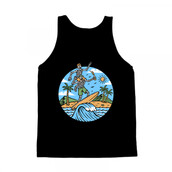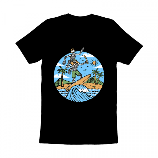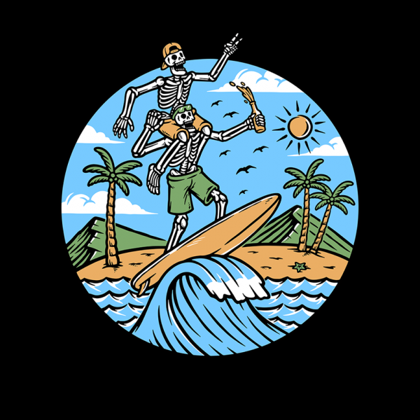 Two skull surfers on the beach