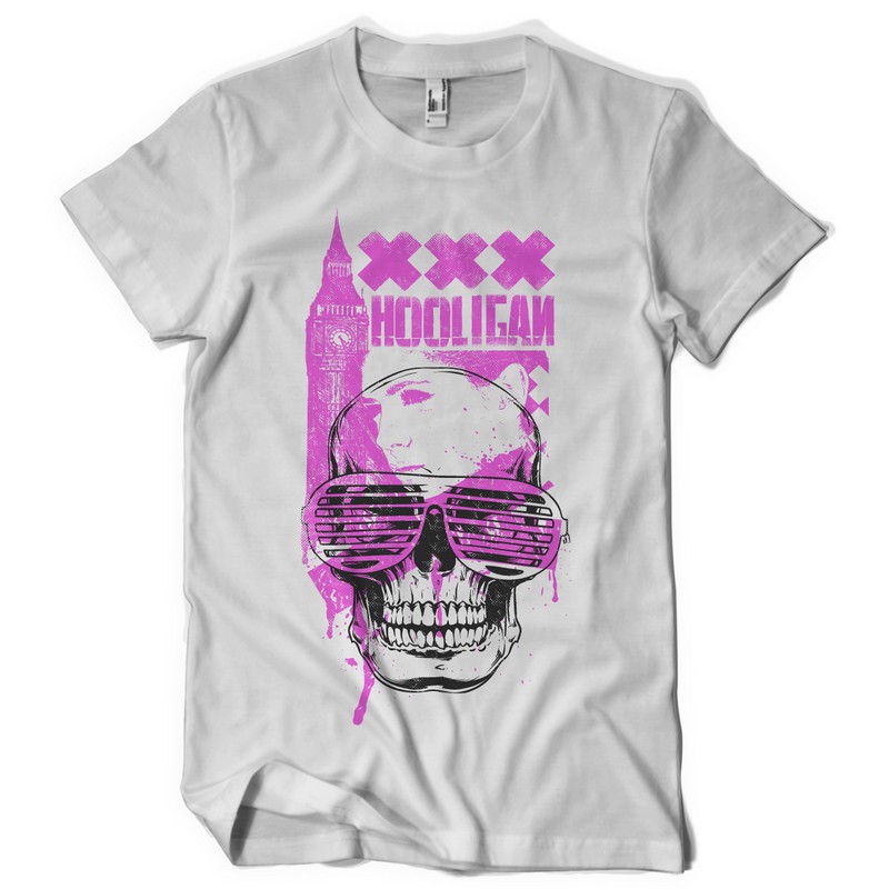 Digital design featuring detailed badass skull. UK Hooligan template is available in vector format and can be used for digital printing and screenprinting. The file will be available for Adobe Illustrator, Adobe Photoshop and Corel Draw.