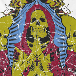 Undead monk printed t-shirt features a detailed screen print of skull woman praying is now available in EPS format file and can be used for digital printing and screenprinting . Ready to print or use in anything you want.