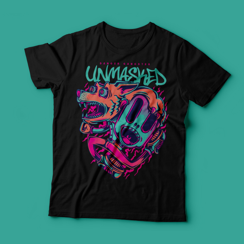 Unmasked its a Character Design that was made in adobe illustrator. Based on vector file , easy to resize and edit. File features AI, EPS, and PNG all in zip, CMYK color mode and 4 color. Can be used for digital printing and screen printing.