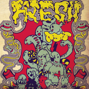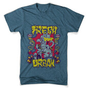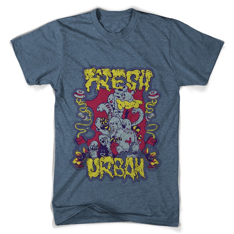 Urban fresh graphic design template in vector format, featuring detailed graphic little monsters now available for Adobe Illustrator, Adobe Photoshop and Corel Draw and can be used for digital printing and screenprinting .