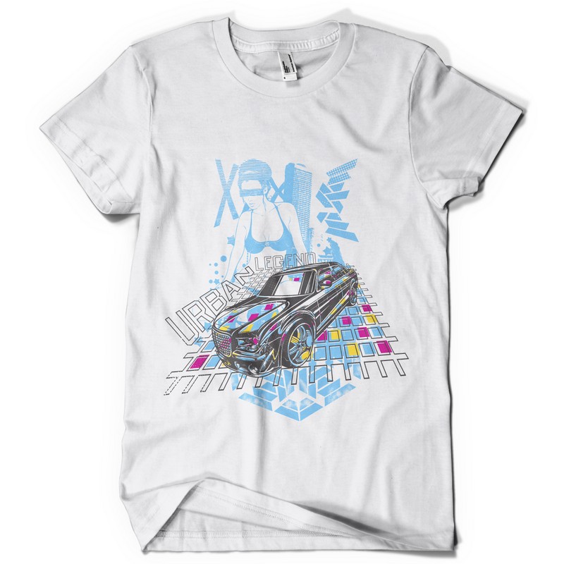 Urban legend graphic design template in vector format, featuring detailed fancy car now available for Adobe Illustrator, Adobe Photoshop and Corel Draw and can be used for digital printing and screenprinting .