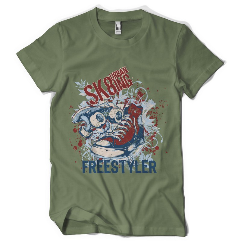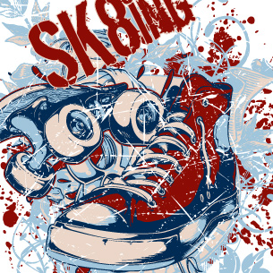 Urban Sk8ing design template in vector format, featuring detailed converse and skater now available for Adobe Illustrator, Adobe Photoshop and Corel Draw and can be used for digital printing and screenprinting .