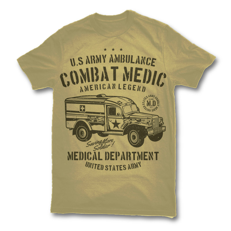US Army Ambulance Tshirt Design Template based on vector files , such as AI and CDR also with PSD separated Layers file, the design has 1 color print, it can be used for digital printing and screen printing.