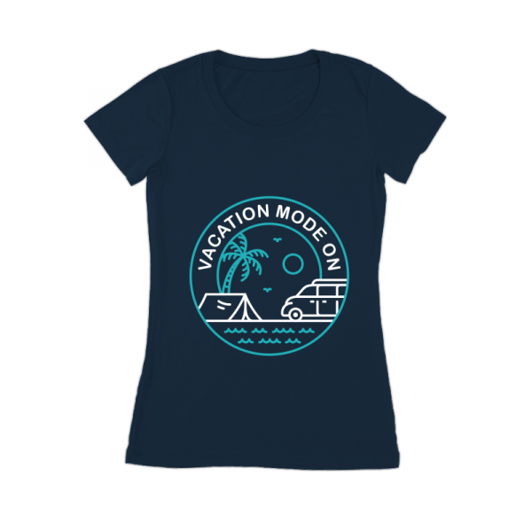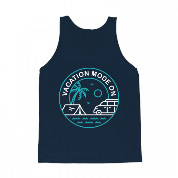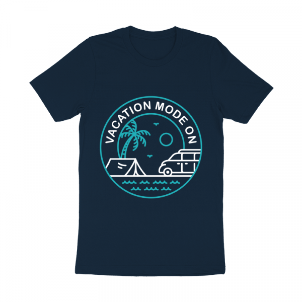 Vacation Mode On 1 is a monoline illustration that is suitable for apparel or merchandise about summer, vacation, holiday, beach, surfing, sport, travel, sea, tropical, adventure, van, nature, camping, campervan.