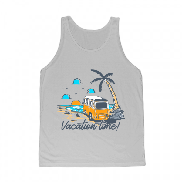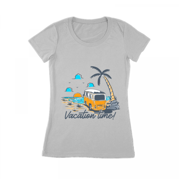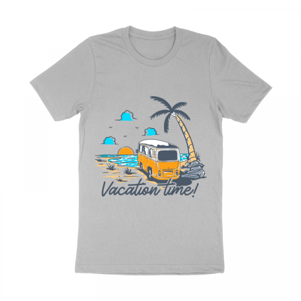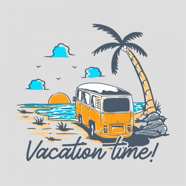 Vacation TIme about summer, vacation, holiday, travel, beach, tropical, surfing, van, vehicle, paradise, surfboard, car, island, bus, camper van, caravan.