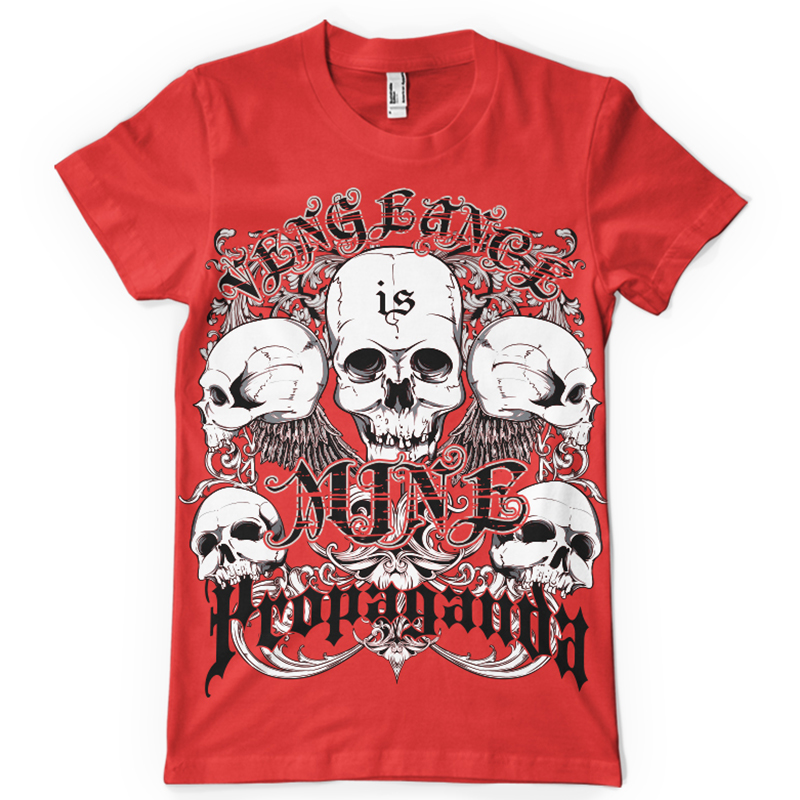 Vengeance is mine printed t-shirt features a detailed screen print of propaganda skulls is now available in EPS format file and can be used for digital printing and screenprinting . Ready to print or use in anything you want.