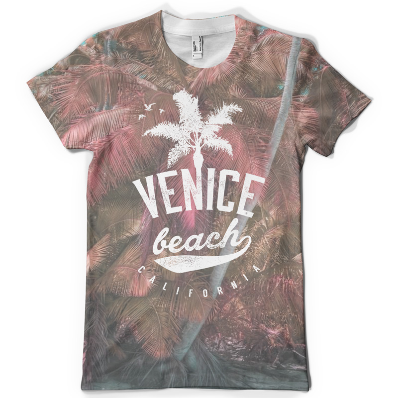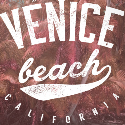 "Venice Beach California" T-shirt design featuring typography style text, with distressed details. The download does not contain the pattern on the tshirt, just the typography text "Venice Beach California", with the palm tree!
