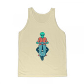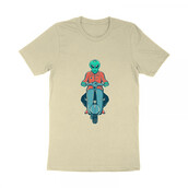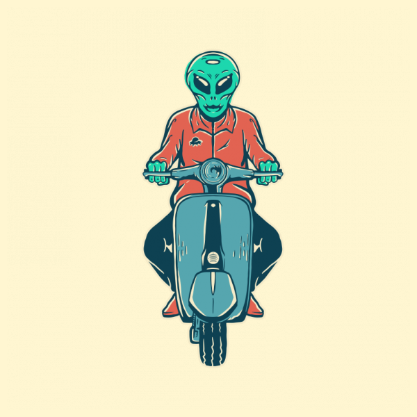 Vespa Tour in Scape is an illustration about vespa, scooter, chopper, bobber, motorcycle, biker, bike, motor, alien, ufo, astronaut, space, galaxy.