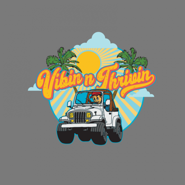 This design “Vibin n thrivin” is made in Adobe Ilustrator is ready for print.