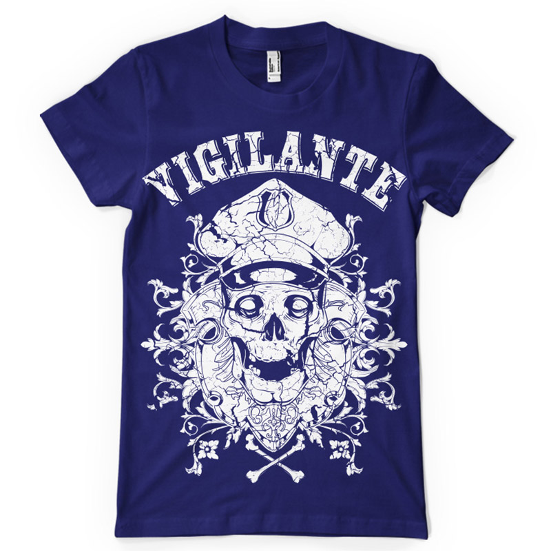 Vigilante t-shirt print features a detailed design available for Adobe Illustrator, Adobe Photoshop and Corel Draw and can be used for digital printing and screenprinting . Ready to print or use in anything you want.