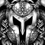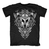 Illustration of viking helmet armor with hand drawing looking and tatto style design. Ready to print on t-shirt.