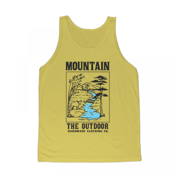 Vector illustration of tropical village farm with beautiful mountain landscape background. Ready to print on t-shirt.