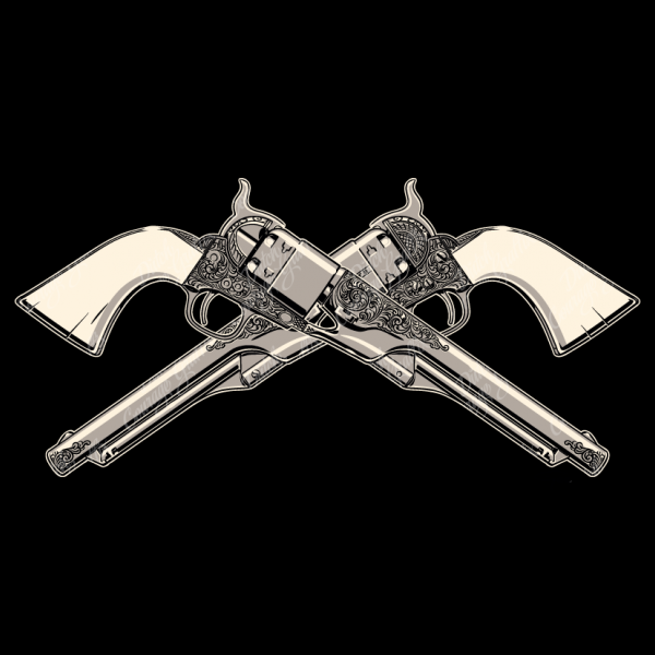 Vintage Samuel Colt .44 Army engraved pistol revolver gun weapon - full left and right sides - vector illustration