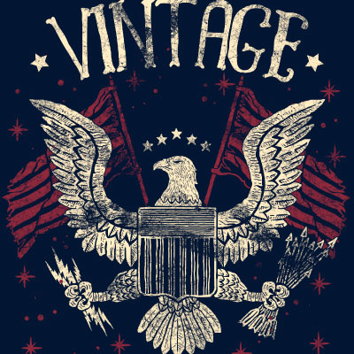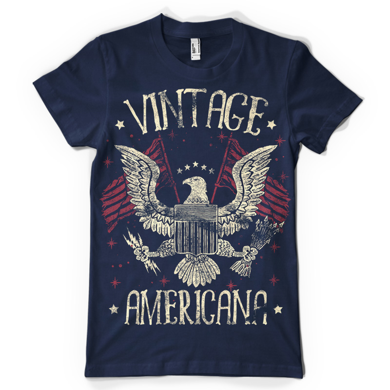 Vintage Americana t-shrit design avaialble in PSD format for Adobe Photosop software.The deisgn features American symbols such the eagle and the American flag.