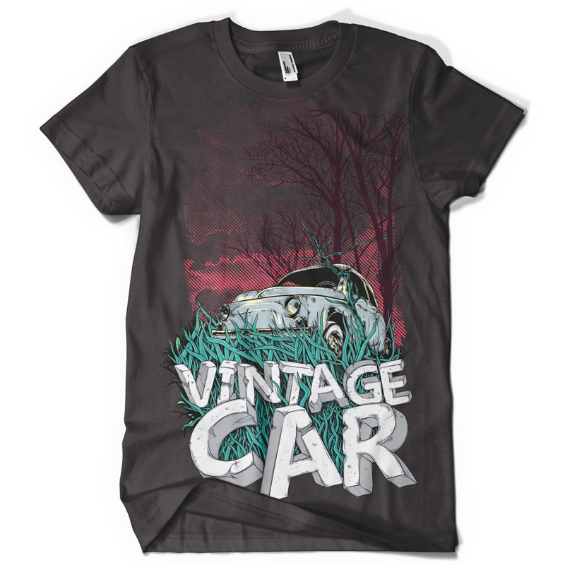 Vintage Car t-shirt design in vector format, made for screenprinting and digital (DTG) printing, can be used with Adobe Illustrator, Photoshop and Corel Draw. The template can be customized by the designer.