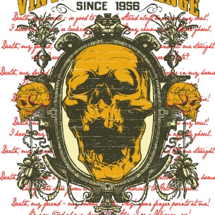 Vintage challenge design template in vector format, featuring detailed creepy skull in mirror now available for Adobe Illustrator, Adobe Photoshop and Corel Draw and can be used for digital printing and screenprinting .