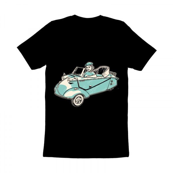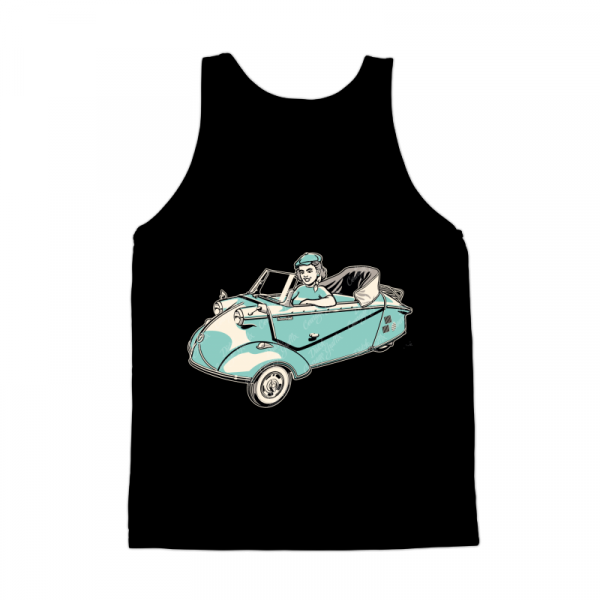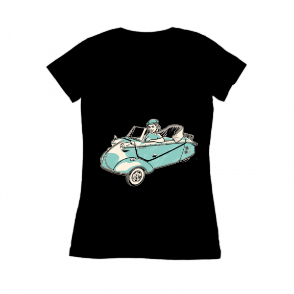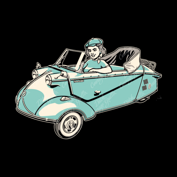Vintage German classic Messerschmitt KR200 Roadster cabin roller micro car with pinup girl - vector illustration