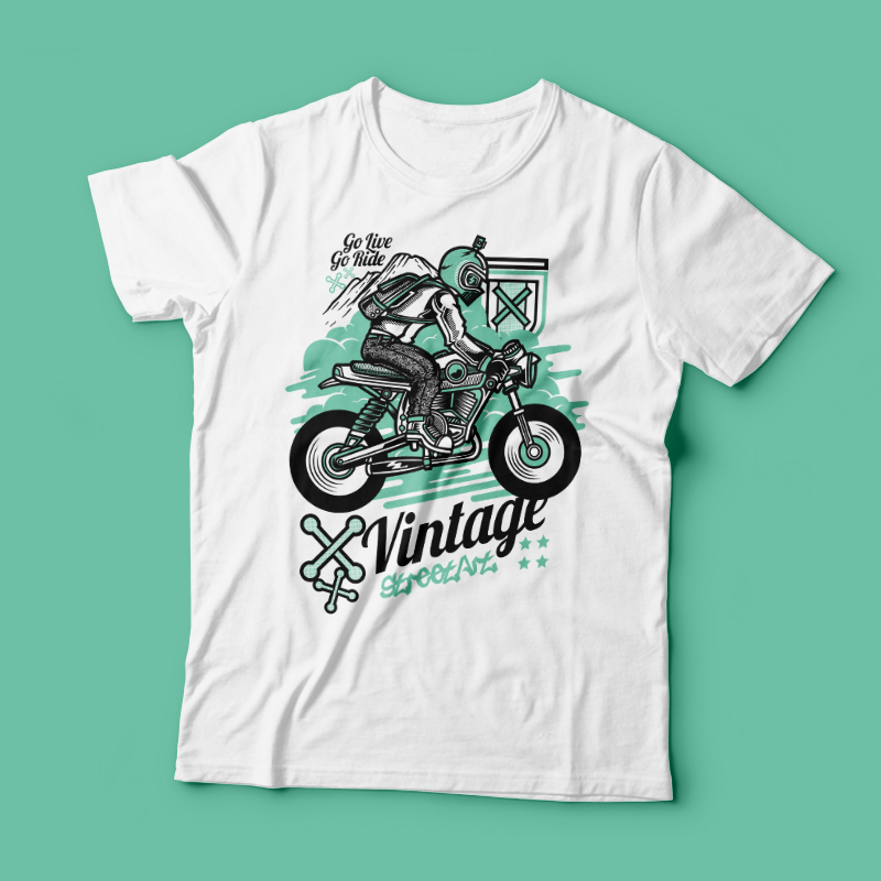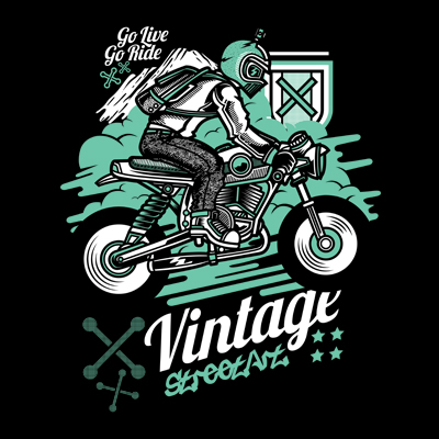 Vintage Motocycle a Character Design that was made in adobe illustrator. Based on vector file , easy to resize and edit. File features AI, EPS, and PNG all in zip, CMYK color mode and 3 color (2 color if in white/black shirt). Can be used for digital printing and screen printing.