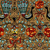 Vintage peacock pattern part of the Vector collection of seamless patterns with vintage roses, diamonds and funny skulls. This image is a vector illustration and can be scaled to any size without loss of resolution. This image will download as a .eps file.