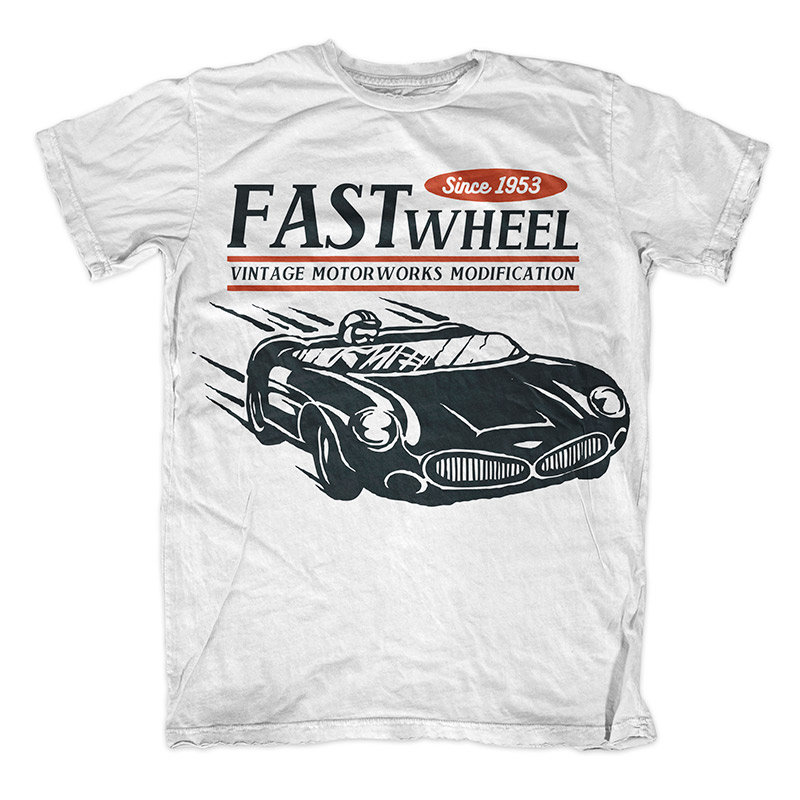 Illustration of high speed vintage racer with retro car. Ready to print on t-shirt.