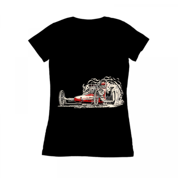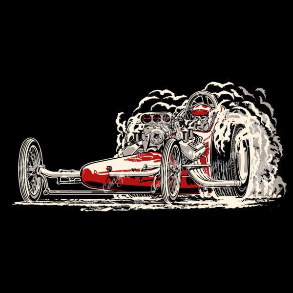 Vintage slingshot FED front engine dragster doing a burnout - vector illustration