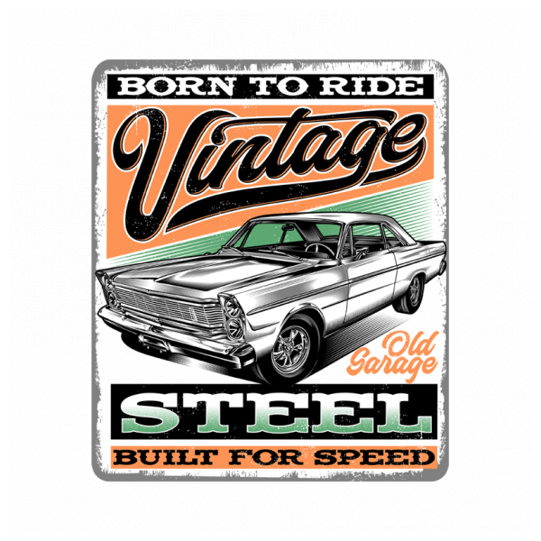 Vintage steel car signs T-Shirt was created with Corel Draw and Adobe illustrator, five color print, CDR,AI,PNG,EPS Can be used for digital printing and screen printing