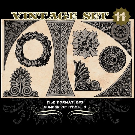 Vintage sets boffer you ornaments, flourishes and frames from old books. This art genre is specific to the rich, exotic imagery of the Renaissance and Baroque periods. Since it is really trendy nowadays to wear graphics that contain vintage elements, we thought these ones would come in handy for you as well.